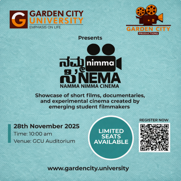 Bengaluru, 28 November 2025-Garden City University (GCU) successfully hosted Namma Nimma Cinema, a vibrant showcase of short films, documentaries, and experimental cinema created by emerging student filmmakers. The event, held at the GCU Auditorium, celebrated creative storytelling, visual experimentation, and collaborative student production.